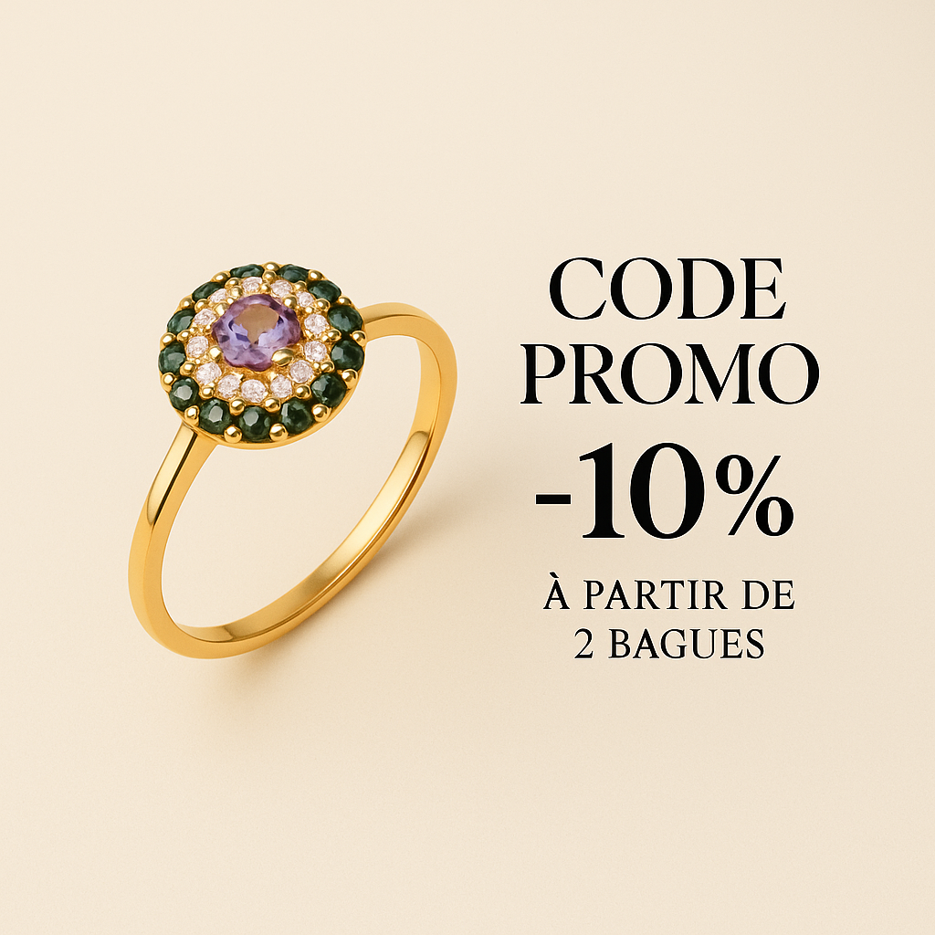 Profitez dès maintenant de -10% à partir de 2 bagues grâce à notre code promo exclusif ci-dessous :