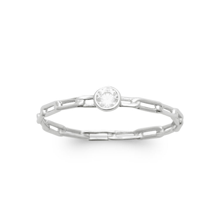 Bague au motif de chaîne en argent 925/000 rhodié surmontée d'un oxyde de zirconium blanc serti clos.