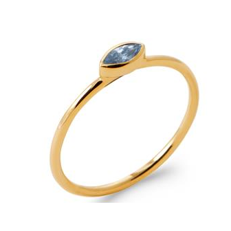 Belle bague avec anneau fin et une pierre synthétique bleue