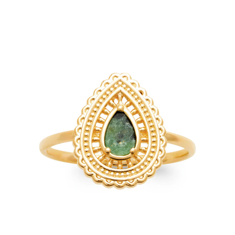 Sublimez vos mains avec cette magnifique bague en plaqué or 18 carats ornée d’une pierre naturelle en forme de goutte.