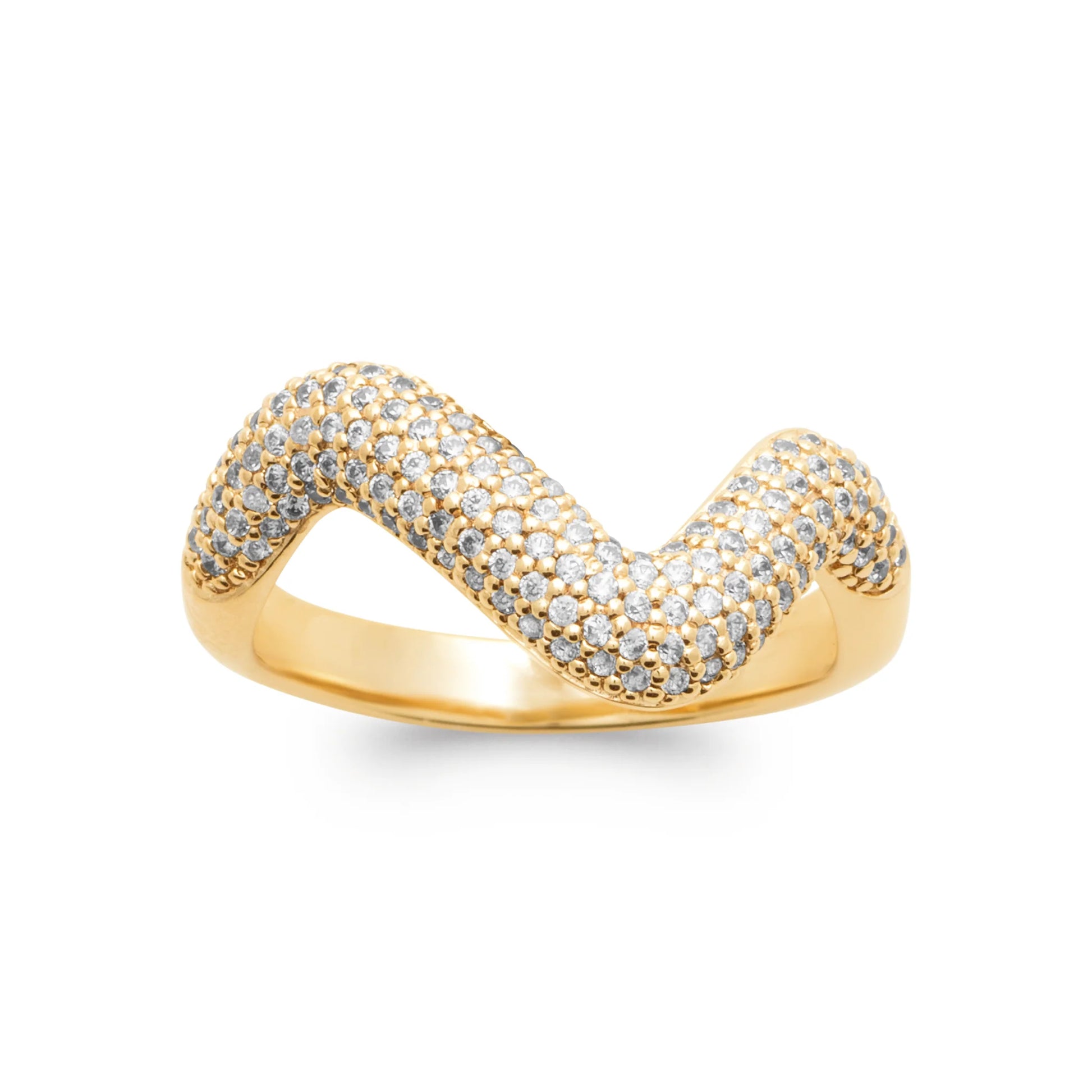 La bague vague plaqué or 18 carats, finement sertie d'oxydes de zirconium, est un bijou délicat et raffiné, alliant élégance et modernité. Son design fluide, inspiré des courbes d'une vague, symbolise à la fois la douceur et la force. Les oxydes de zirconium, subtilement disposés sur la surface de la bague, apportent un éclat lumineux et une brillance comparable à celle des diamants, créant un effet de lumière captivant à chaque mouvement. Le plaquage or 18 carats confère à la pièce une finition dorée éclatante et durable, tout en préservant un prix plus accessible que l'or massif. Ce modèle est parfait pour celles qui recherchent une touche de sophistication discrète et intemporelle, idéale pour le quotidien comme pour des occasions spéciales.